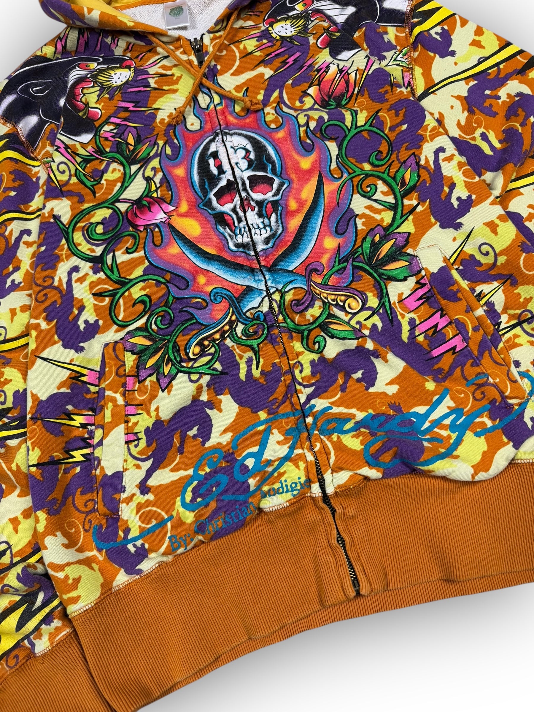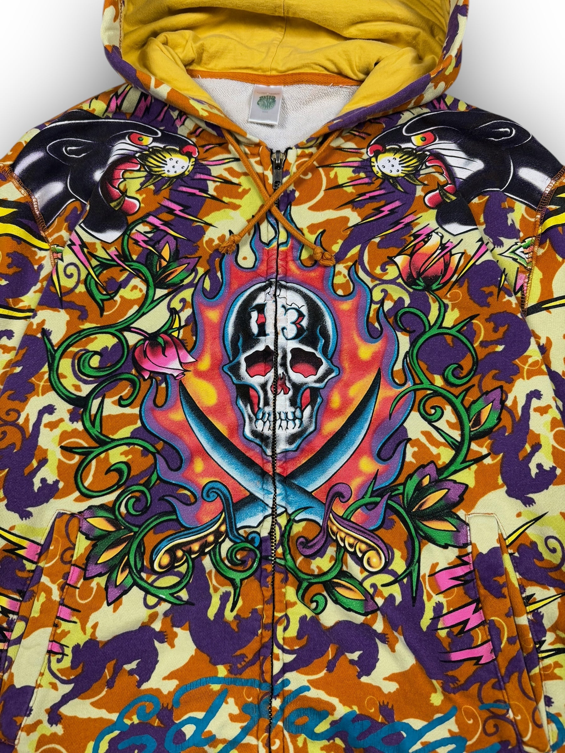 Ed Hardy Skull 13 Rare Vintage Grunge Zip Up Hoodie Size: M